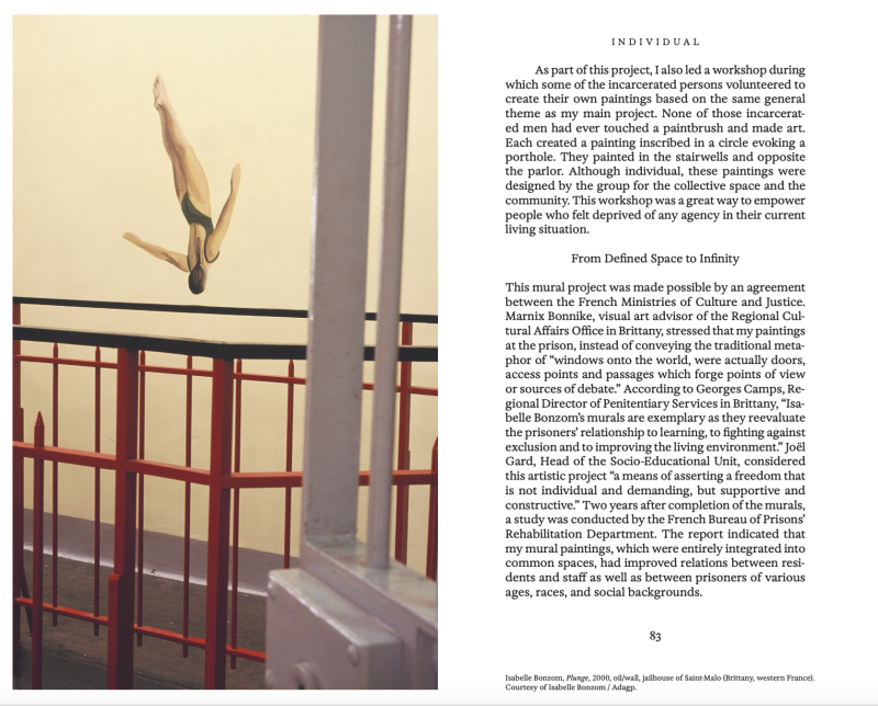Artiste muraliste, auteure de peintures murales à la prison de Saint-Malo, Isabelle Bonzom a été invitée à participer à l'ouvrage collectif Carceral Architecture. Publié en anglais aux Etats-Unis par la maison d'édition allemande JOVIS, ce livre est dirigé par Basile Baudez et Victoria Bergbauer, tous deux de l'université de Princeton.