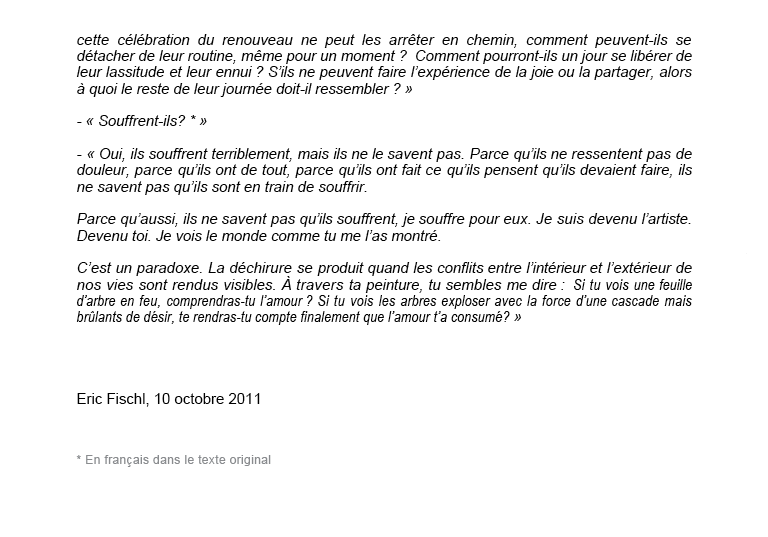et deux textes inédits de l'artiste américain Eric Fischl et du critique d'art Colin Lemoine