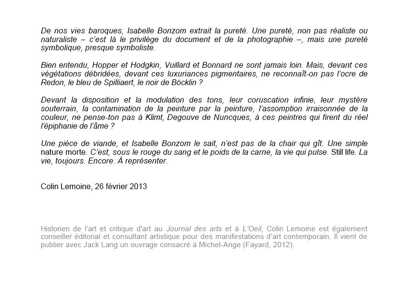 En 2006, le catalogue "Le Vif du Sujet" présentait une conversation entre Pierre Sterckx et Isabelle Bonzom. L'ouvrage étant épuisé, la conversation est disponible sur le net.